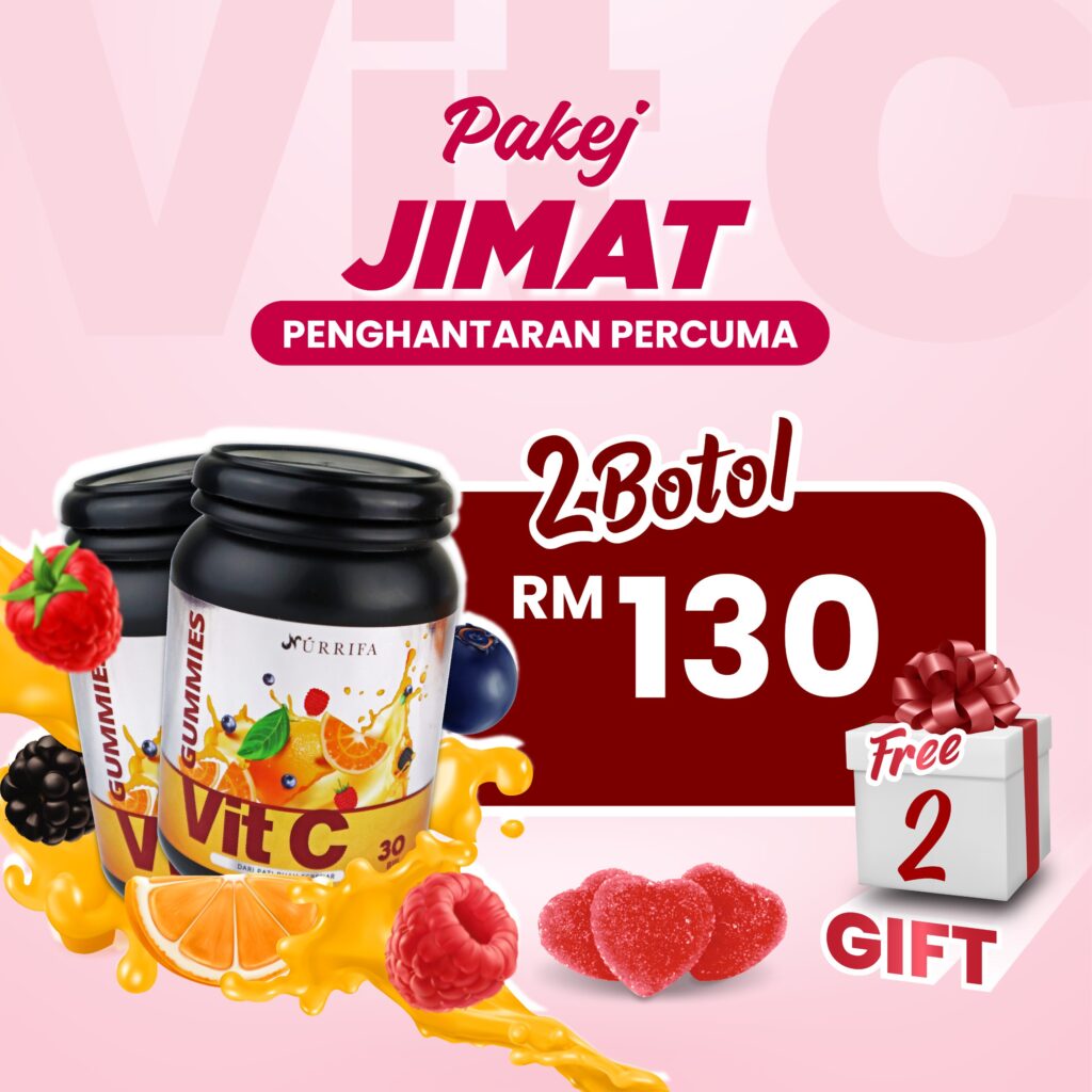 amalkan Nurrifa Gummies Vitamin C setiap hari. 1 biji di waktu pagi selepas sarapan, 1 biji di waktu malam sebelum tidur. Gummies ini dipek dalam botol mudah bawa ke mana sahaja!