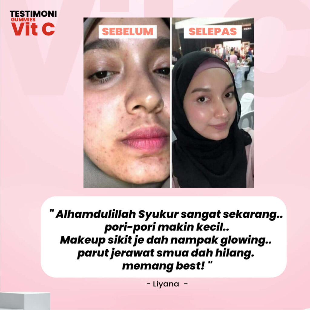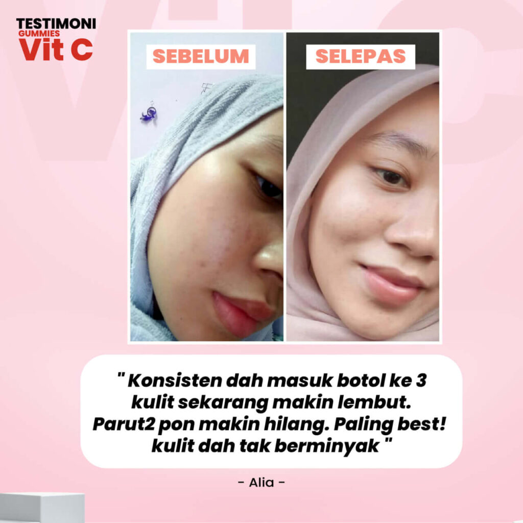 nutrisi yang diperlukan kulit dicukupi dari sebiji Nurrifa Gummies Vitamin C setiap hari.